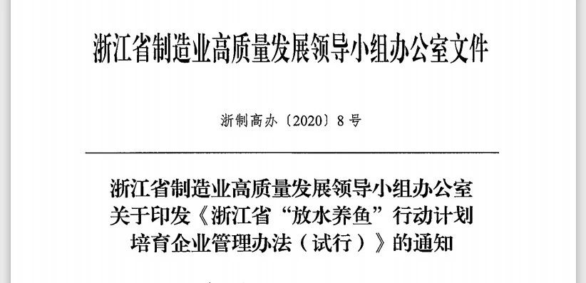 根據(jù)《浙江省“放水養(yǎng)魚”行動(dòng)計(jì)劃》工作要求,重點(diǎn)扶持一批細(xì)分市場(chǎng)有競(jìng)爭(zhēng)優(yōu)勢(shì)、成長(zhǎng)性好、具有關(guān)鍵核心技術(shù)的優(yōu)質(zhì)企業(yè),進(jìn)一步鞏固提升浙江省制造業(yè)、民營(yíng)經(jīng)濟(jì)在全國(guó)的領(lǐng)先地位。