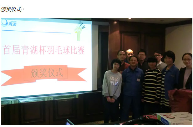 為豐富員工業(yè)余文化生活,增進(jìn)員工之間的交流,給來自不同部門的同事搭建八小時(shí)之外的良好溝通平臺,促進(jìn)“和諧青湖、健康青湖、快樂青湖”建設(shè),2014年11月9日公司在雅戈?duì)栿w育館組織了首屆“青湖杯“羽毛球比賽。本著“我運(yùn)動、我健康、我快樂”的目的,來自PMC部、質(zhì)量部、IT部、客服部、人事部等員工踴躍報(bào)名參與,攜手并肩向快樂出發(fā)。